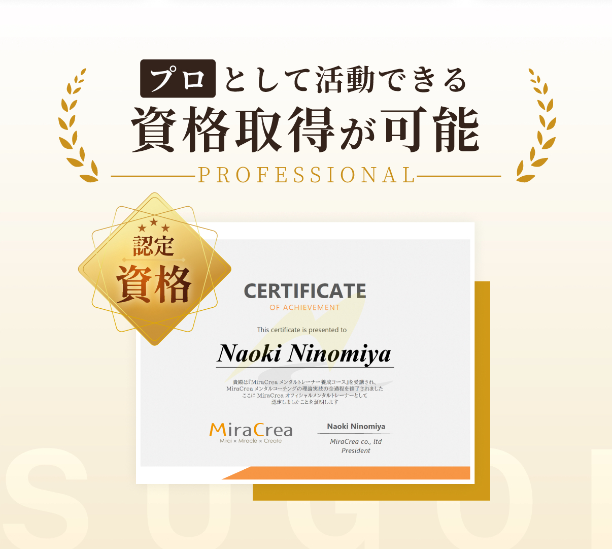 その後メンタルトレーナー・コーチとして独立し、株式会社MiraCreaを設立。